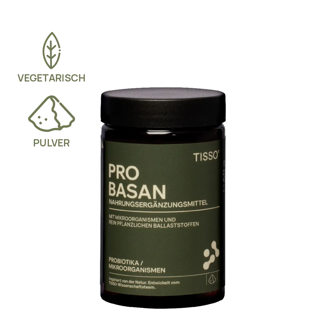 Je dagelijkse basisvoorraad probiotische bacterieculturen: Pro Basan combineert zes stammen melkzuur- en bifidobacteriën en bevat 2 miljard bacteriën per dagelijkse dosis. Na het roeren in vloeistof worden de bacteriën weer actief en kunnen zo het maagzuur overleven en levend de darm bereiken.
