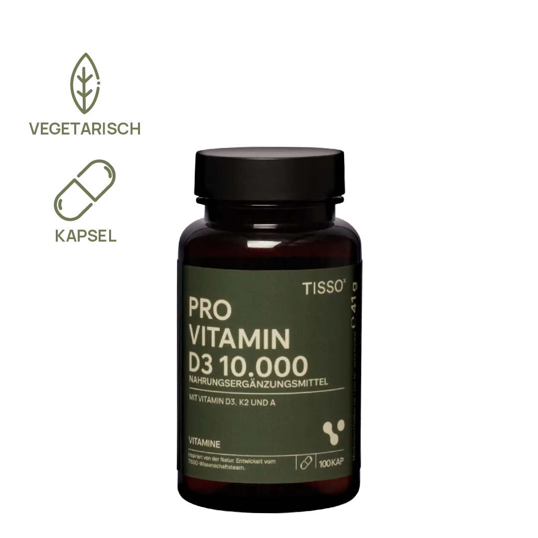 Natuurlijke vitamine D3 als effectieve hooggedoseerde capsule: Vitamine D3 voor de dagelijkse behoefte is hier optimaal gecombineerd met de twee essentiële cofactoren vitamine A en K2 (bioactief all-trans MK-7). Eén capsule voorziet je lichaam van 10.000 IE natuurlijke vitamine D3.
