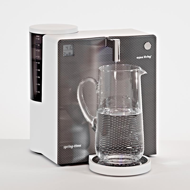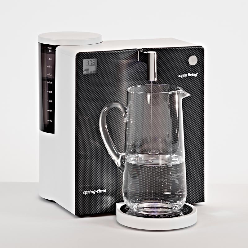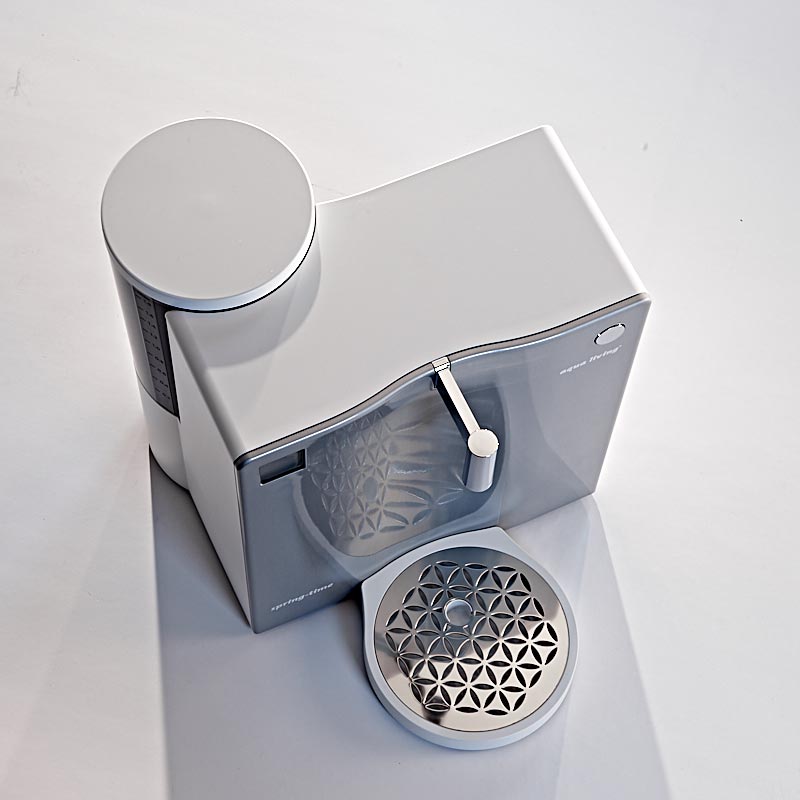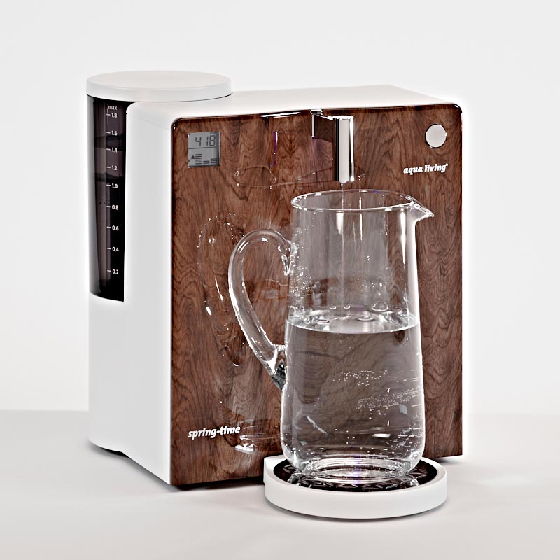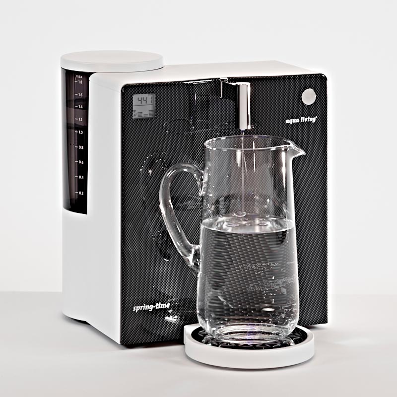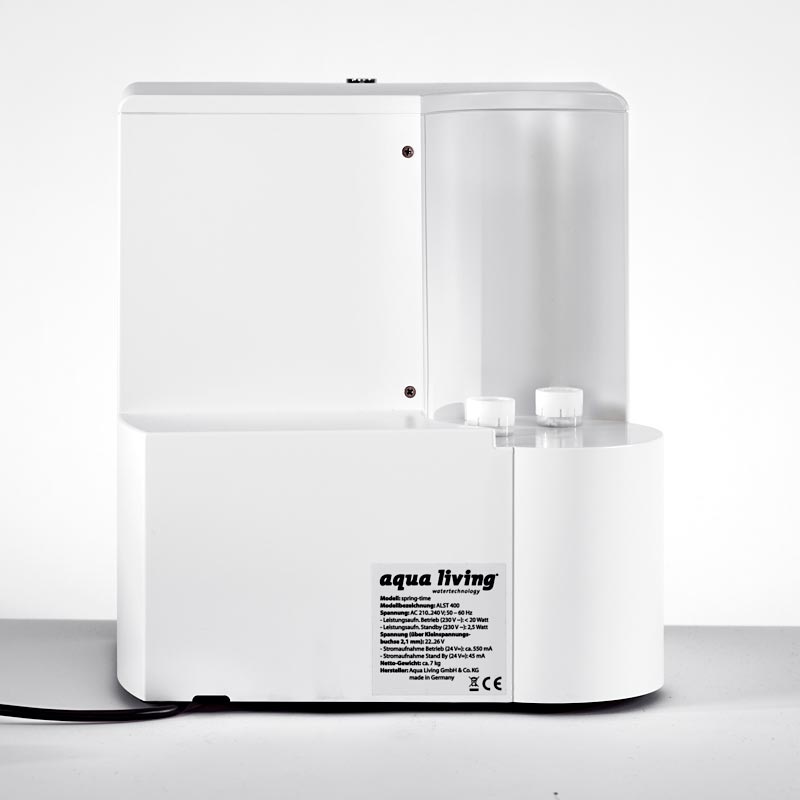 In 7 subtiele stappen herwint kraanwater alle natuurlijke eigenschappen die belangrijk zijn voor ons lichaam, maar die verloren zijn gegaan in gewoon leiding- en flessenwater. Het water "maken" is eenvoudig: Omdat de Spring-time onafhankelijk van netspanning is, hoeft u het apparaat alleen maar neer te zetten en aan te sluiten en u bent klaar: vers geperst, natuurlijk drinkwater wordt geserveerd met een druk op de knop.